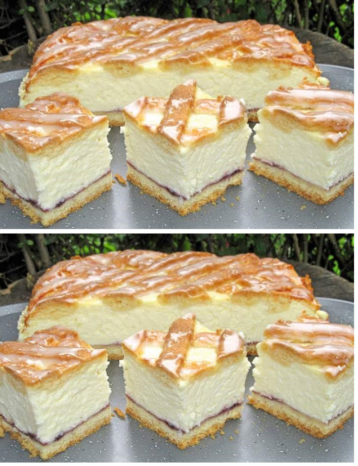 Składniki: Jogurt lub kefir – 125 ml Jajka – 2 szt. Cukier – 125 g Masło – 125 g Dżem – 1 łyżka Skórka z cytryny Sól – szczypta Kasza manna – 450 g Proszek do pieczenia – 10 g Cukier puder do dekorowania – 200 g Sposób przygotowania: